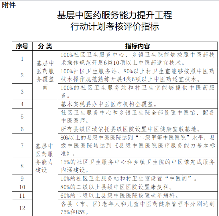 附件:基层中医药服务能力提升工程行动计划考核评价指标