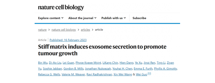 近日,宾夕法尼亚大学郭巍教授团队在 Nature 子刊 Nature Cell Biology 发表了题为:Stiff matrix induces exosome secretion to promote tumour growth 的研究论文。
